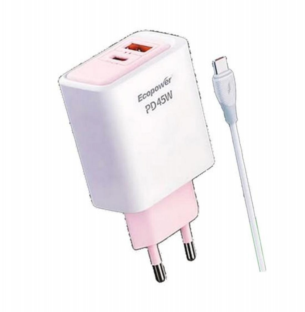 CARGADOR DE CARGA RAPIDA ECOPOWER 45W USB/ C-C