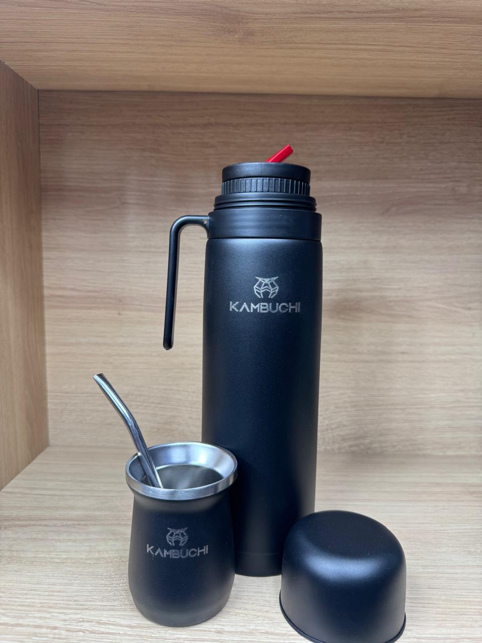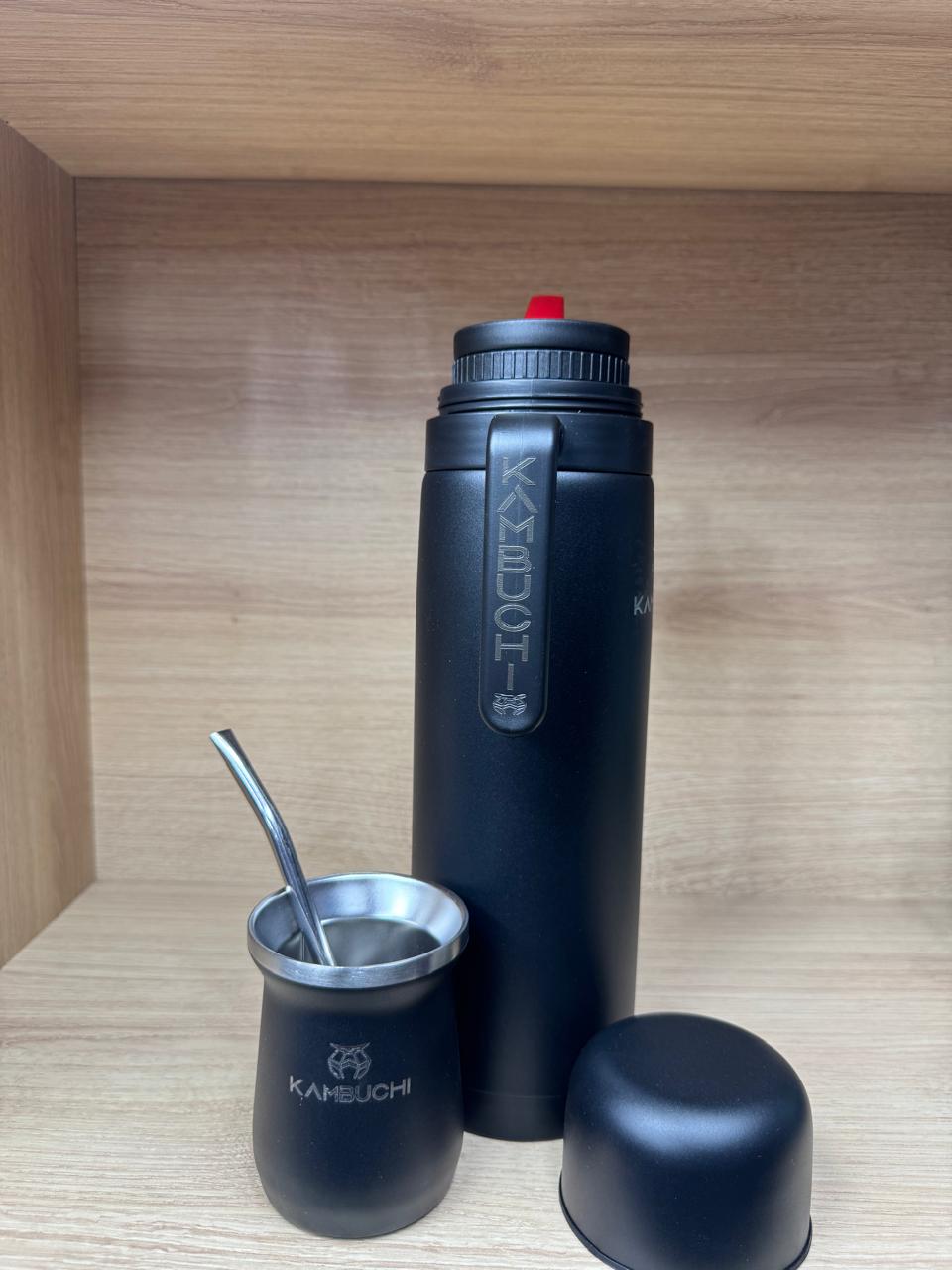 KIT MATE KAMBUCHI DE 1L CON BOMBILLA NEGRO